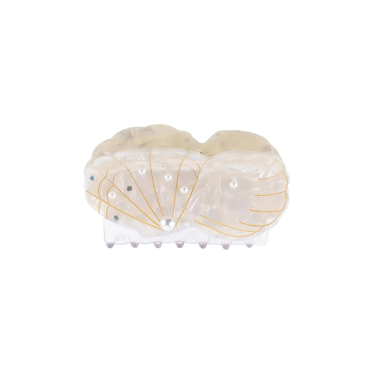 Strandskal hårklemmen i råhvid er inspireret af havets organiske former og giver et blødt, eksklusivt udtryk i håret. Den er perfekt til dig, der vil samle håret hurtigt, men stadig have et stilrent og feminint look.